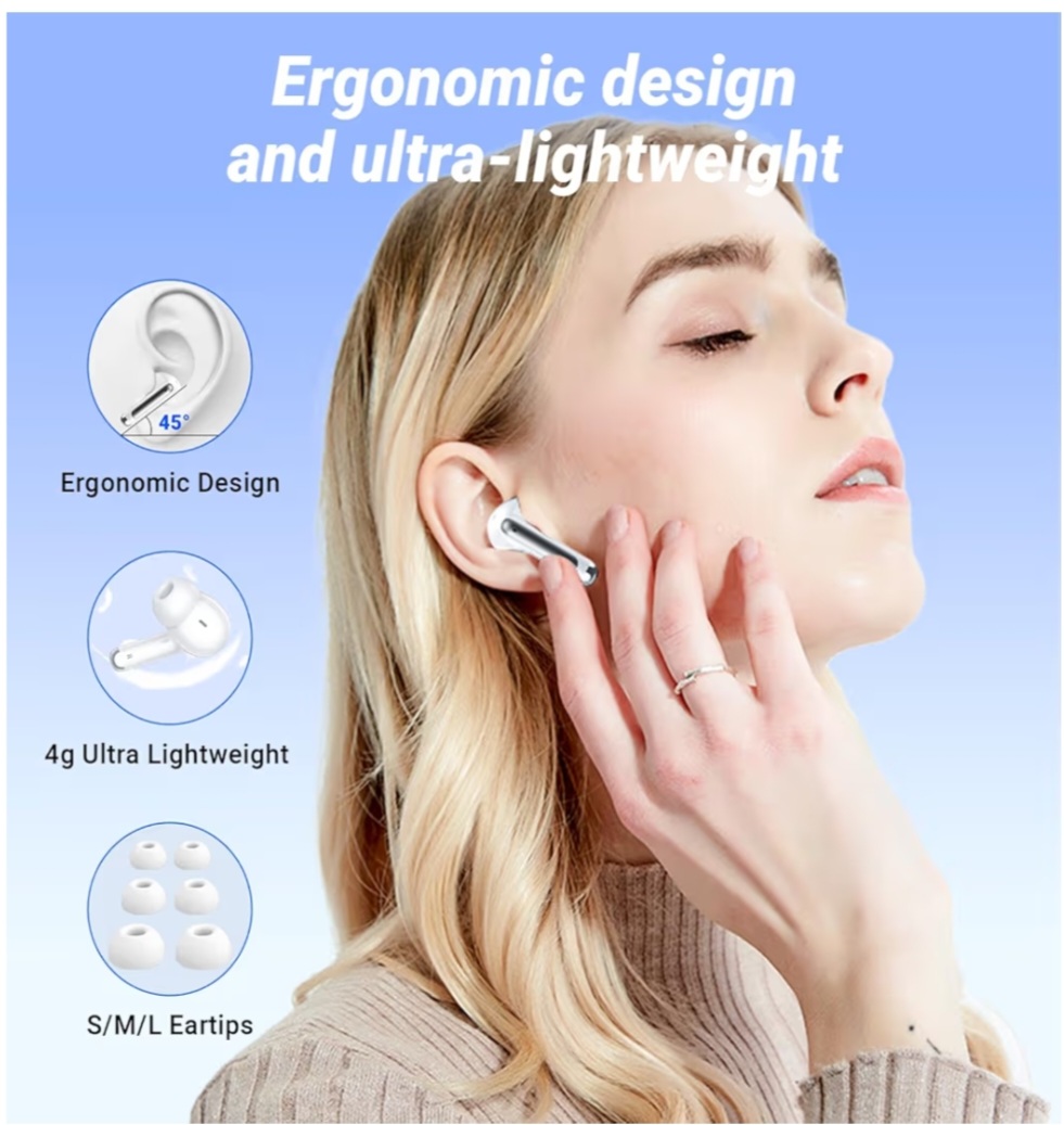 Ergonomic design+3-size earplug adapter The Monyhigh S48 earbuds feature an ergonomic design that fits snugly into the ear canal like a glove. Equipped with three types of soft silicone earplugs, S/M/L, suitable for different ear types. Even if worn continuously for more than 6 hours, there is no obvious fatigue in the ears, and the earplugs are not easy to slip off. They are worn during exercise or daily commuting, balancing comfort and stability.